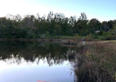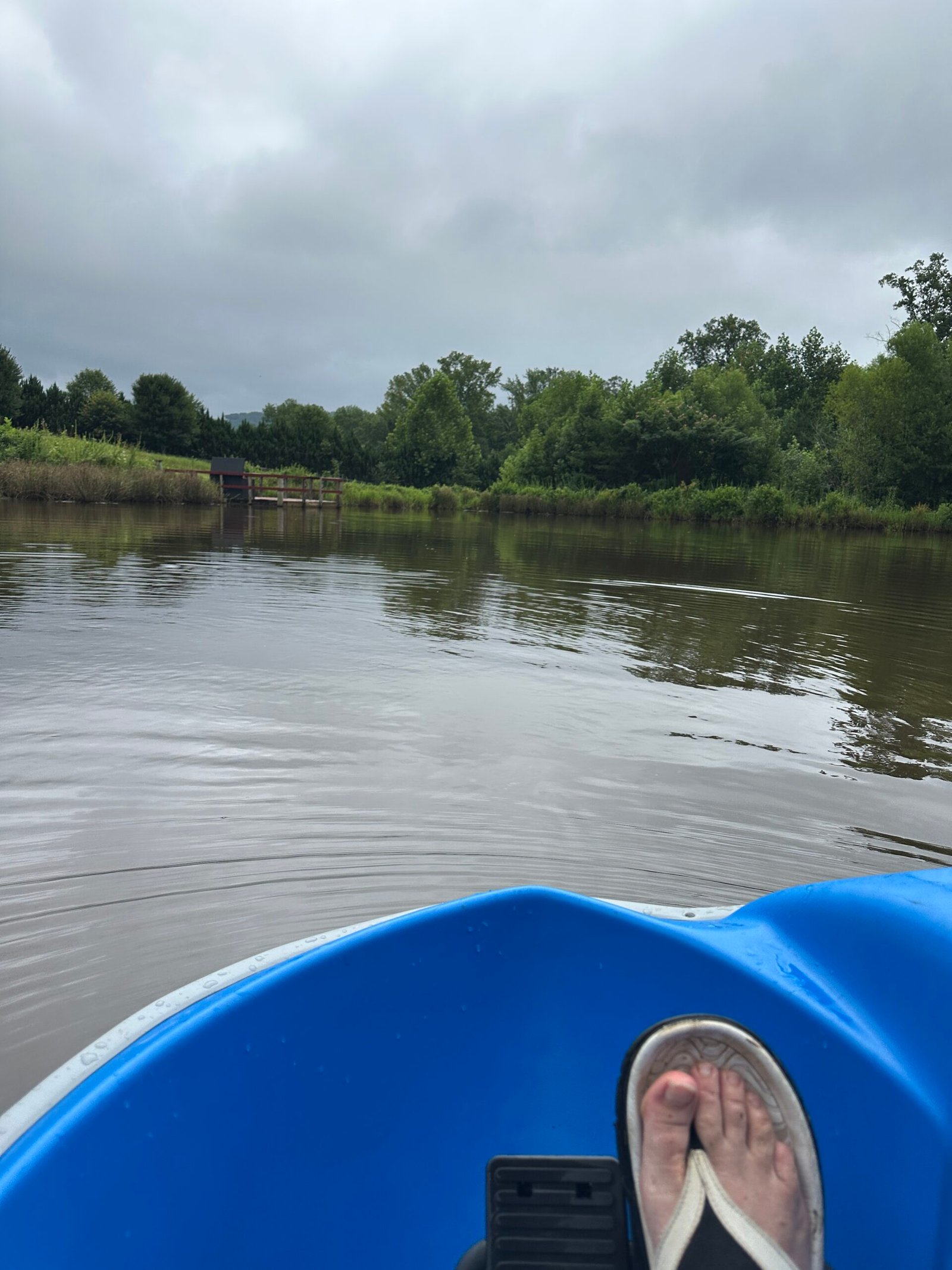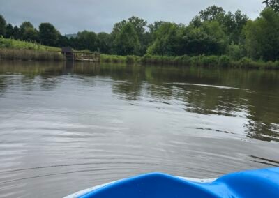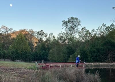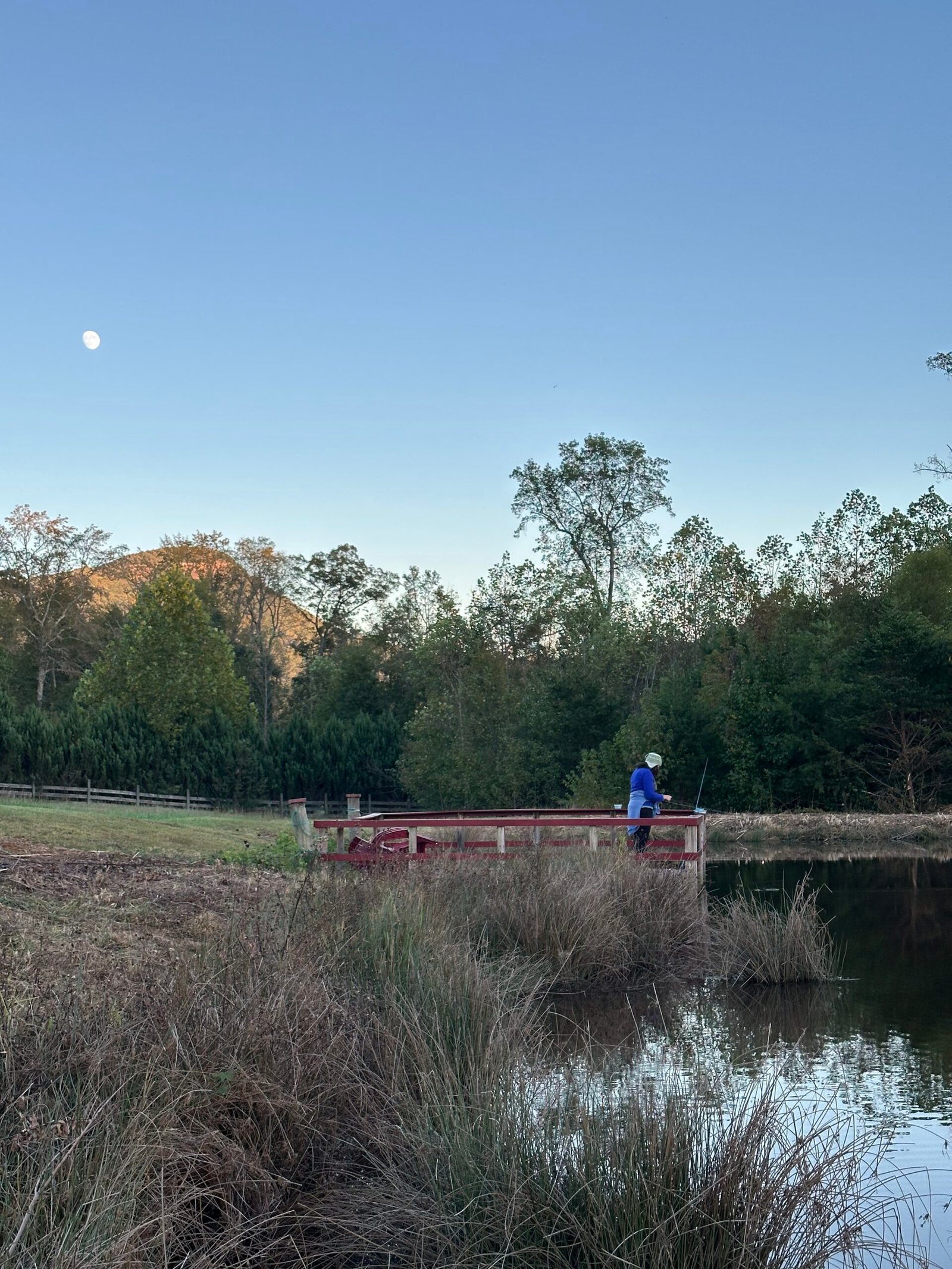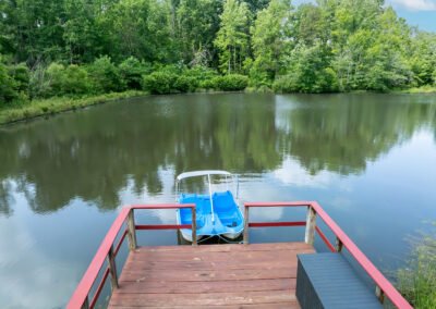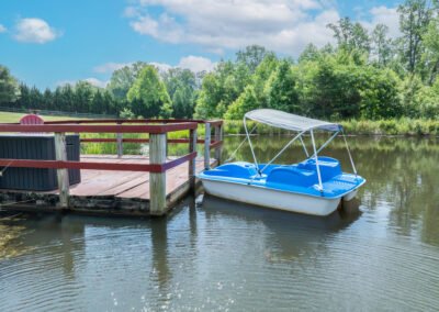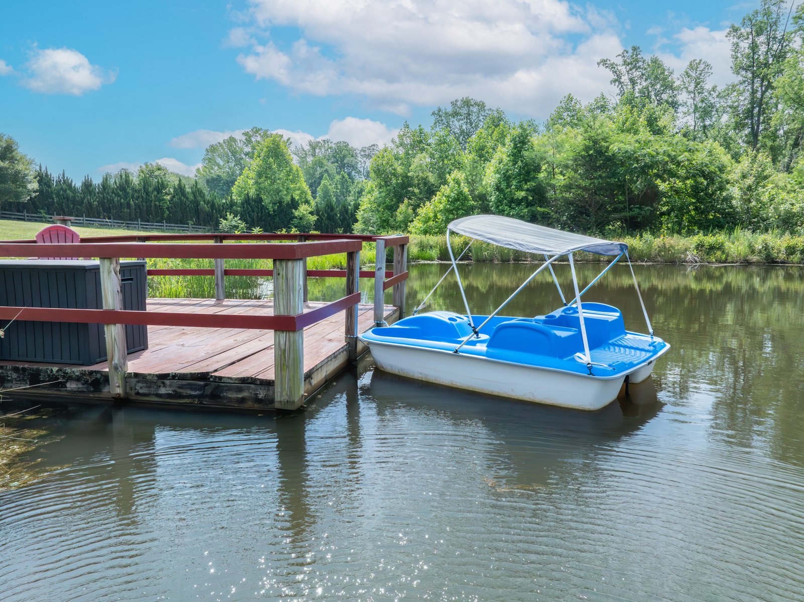The stocked pond sits at the edge of the property like it's been there forever - because it has, and it earns its place every single season. Bring a rod and spend the morning fishing, take the kayak or paddle boat out at golden hour, or just find a seat on the bank and watch the water hold still while everything else slows down around it. It's the kind of spot that guests mention first when they tell people about the trip.