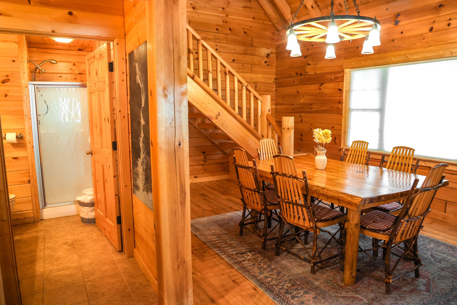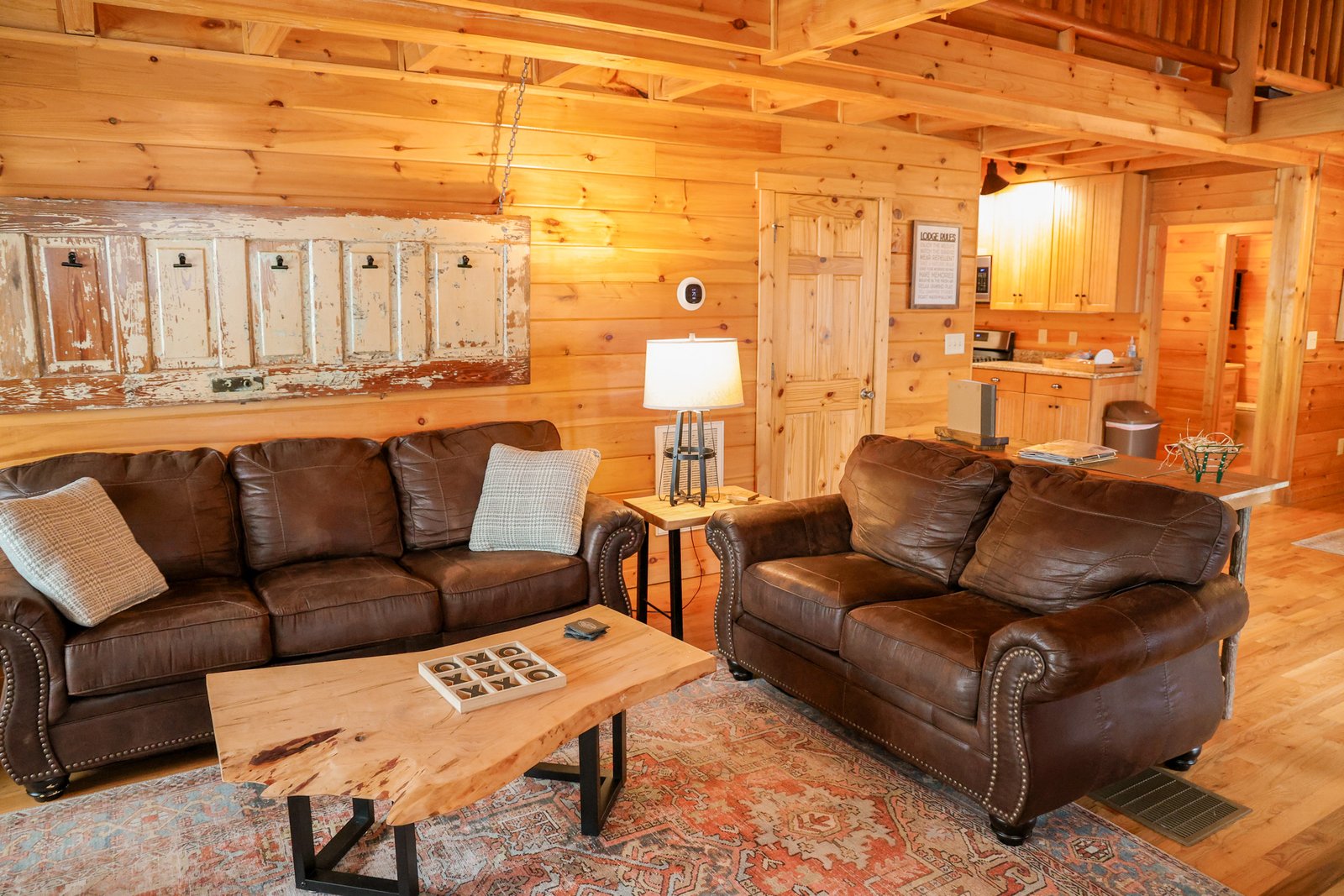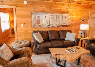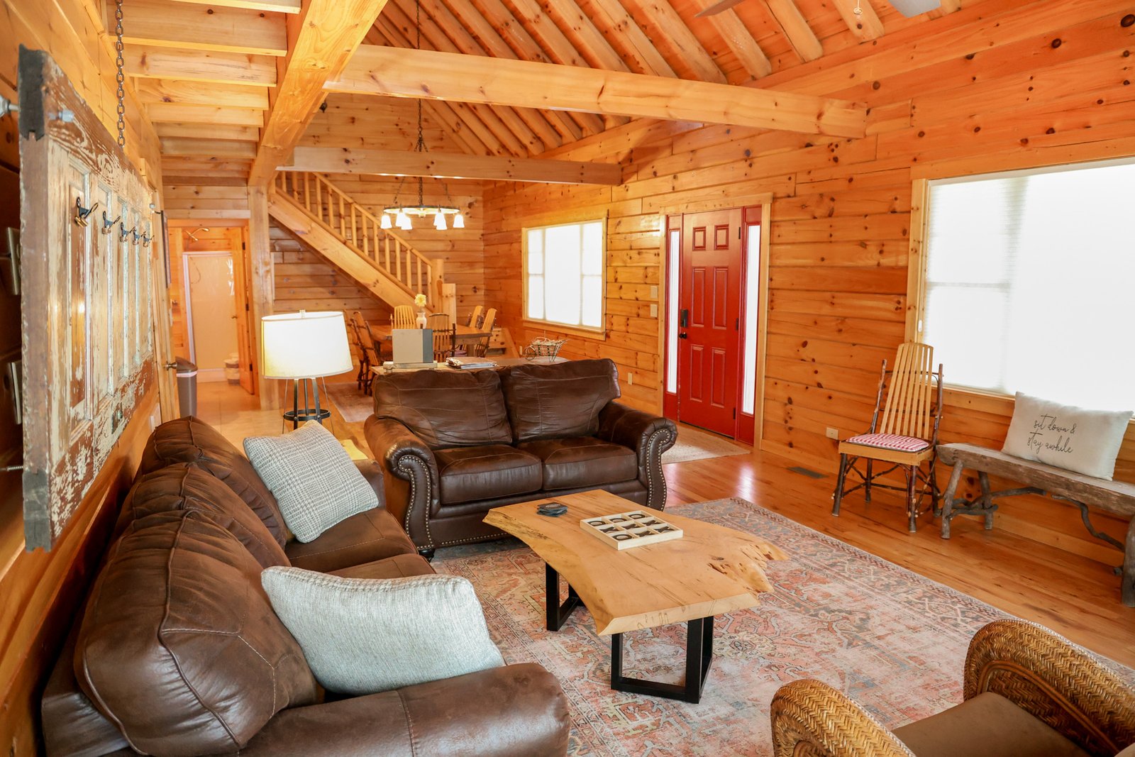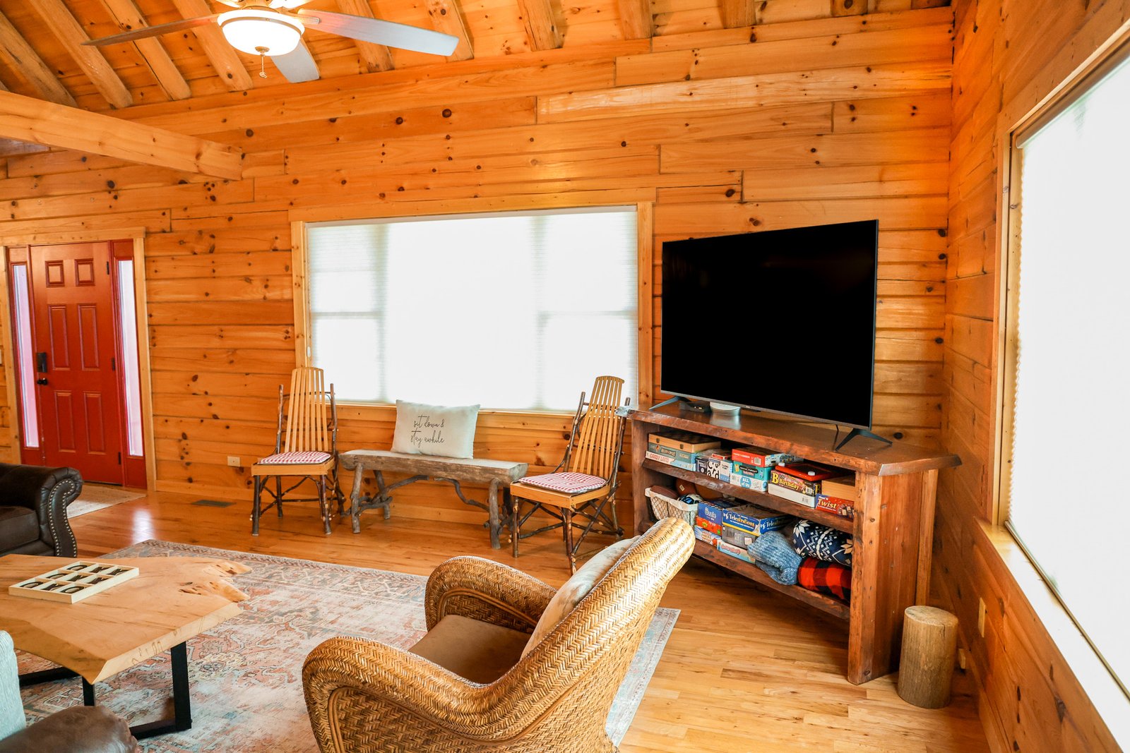 The living room is the heartbeat of Woodchuck Acres - a generous, open space with seating for the whole group and a warmth that makes it hard to leave. Whether you're gathered around after a long day on the trails, or just sharing a meal with nowhere to be, this room was made for exactly that. It's comfortable without being precious, lived-in without being tired - the kind of space that immediately feels like yours.