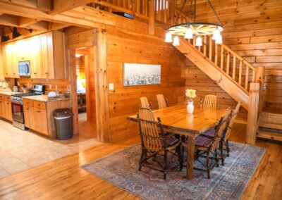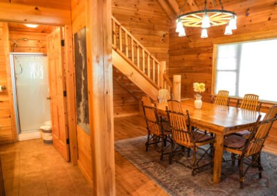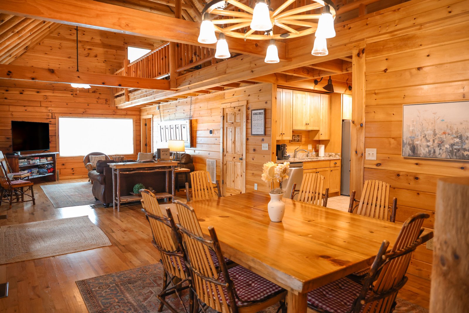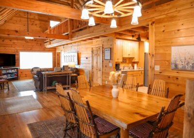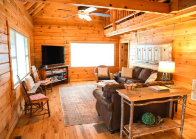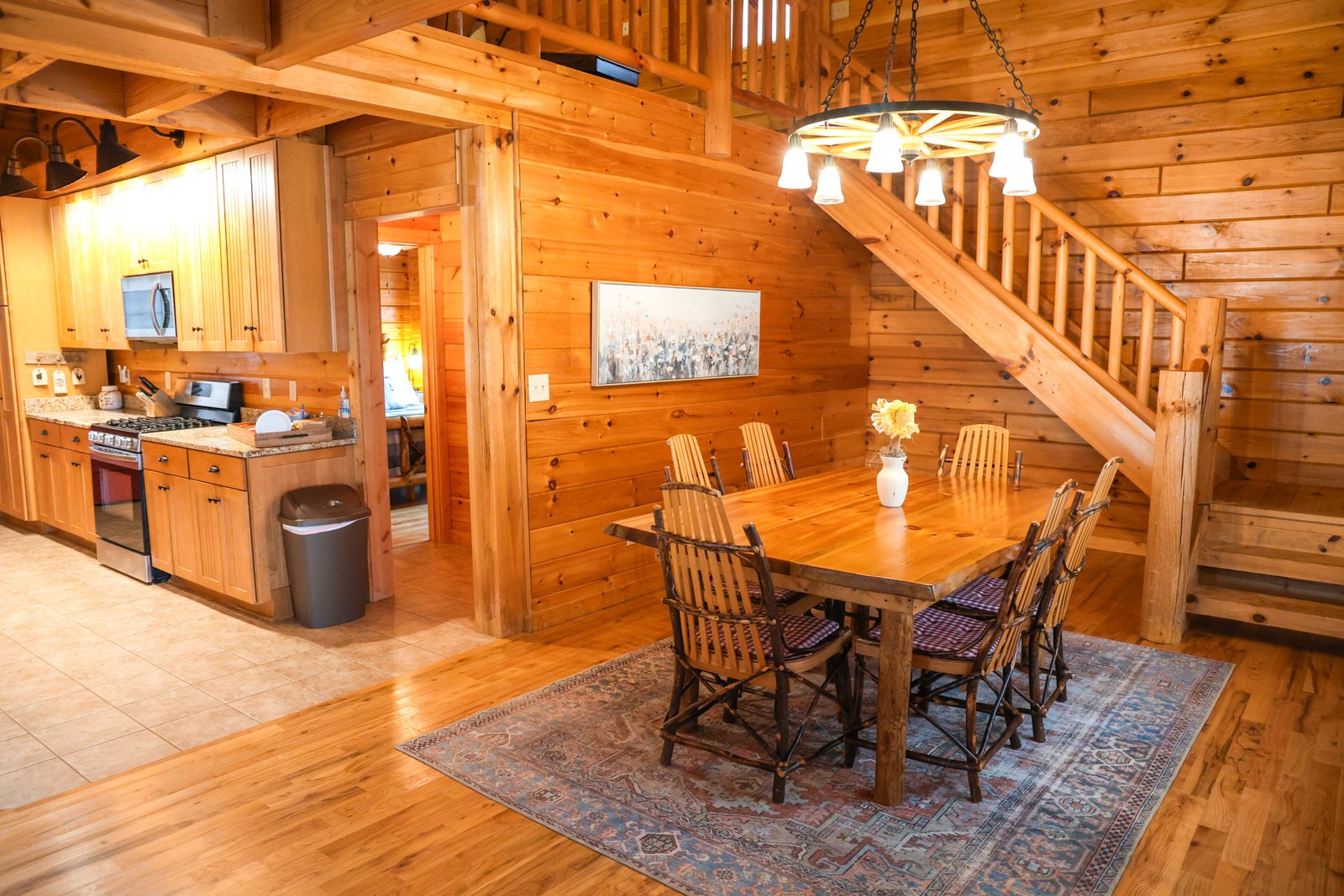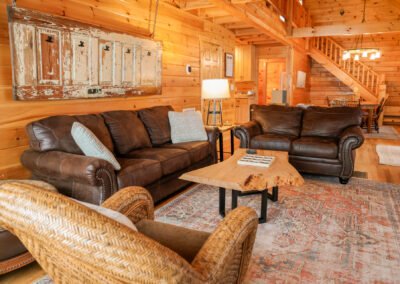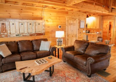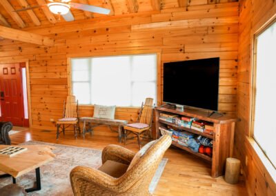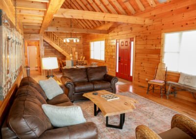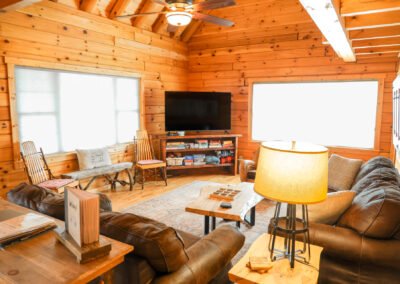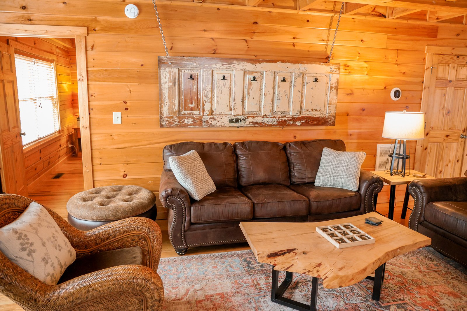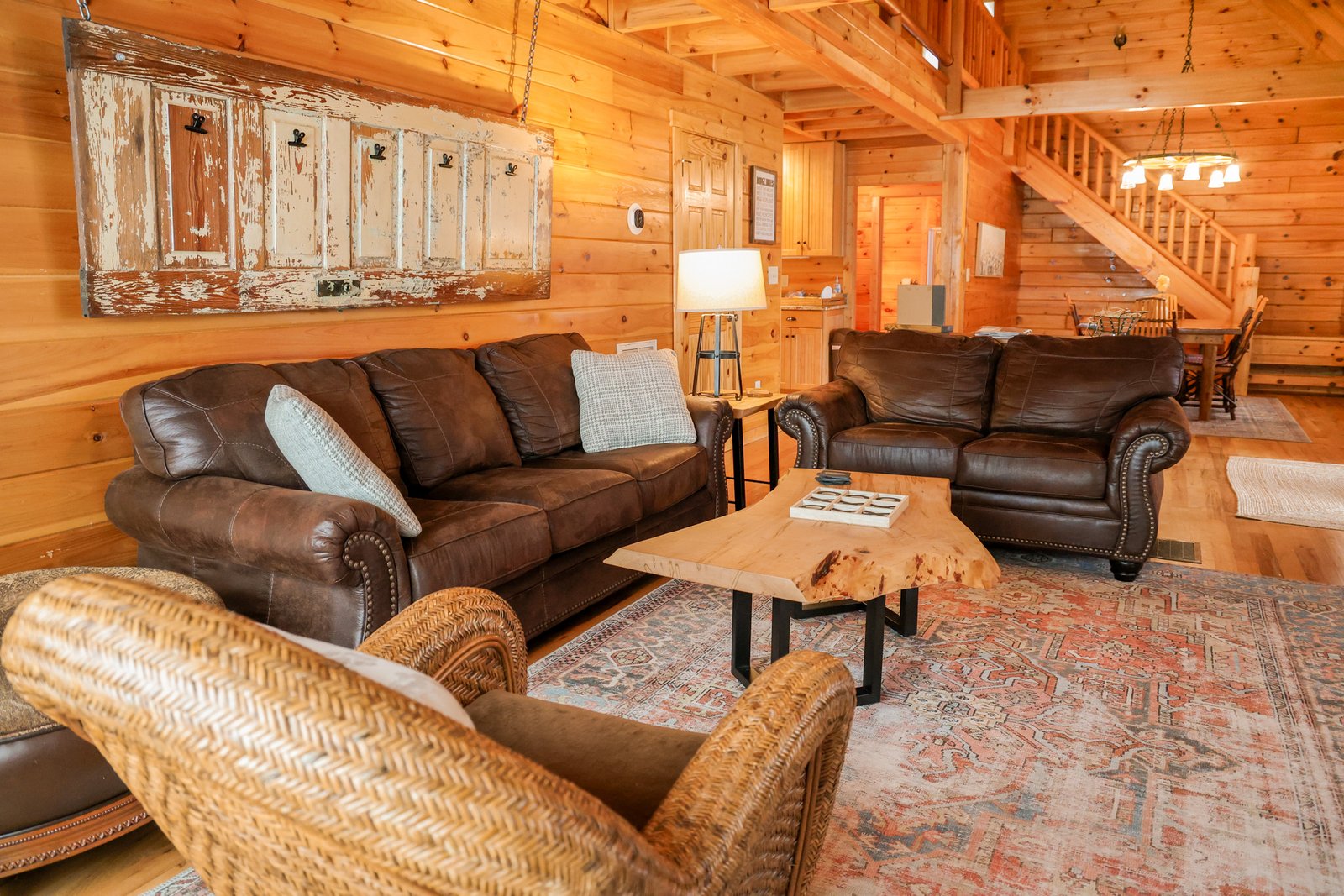 The living room is the heartbeat of Woodchuck Acres - a generous, open space with seating for the whole group and a warmth that makes it hard to leave. Whether you're gathered around after a long day on the trails, or just sharing a meal with nowhere to be, this room was made for exactly that. It's comfortable without being precious, lived-in without being tired - the kind of space that immediately feels like yours.
