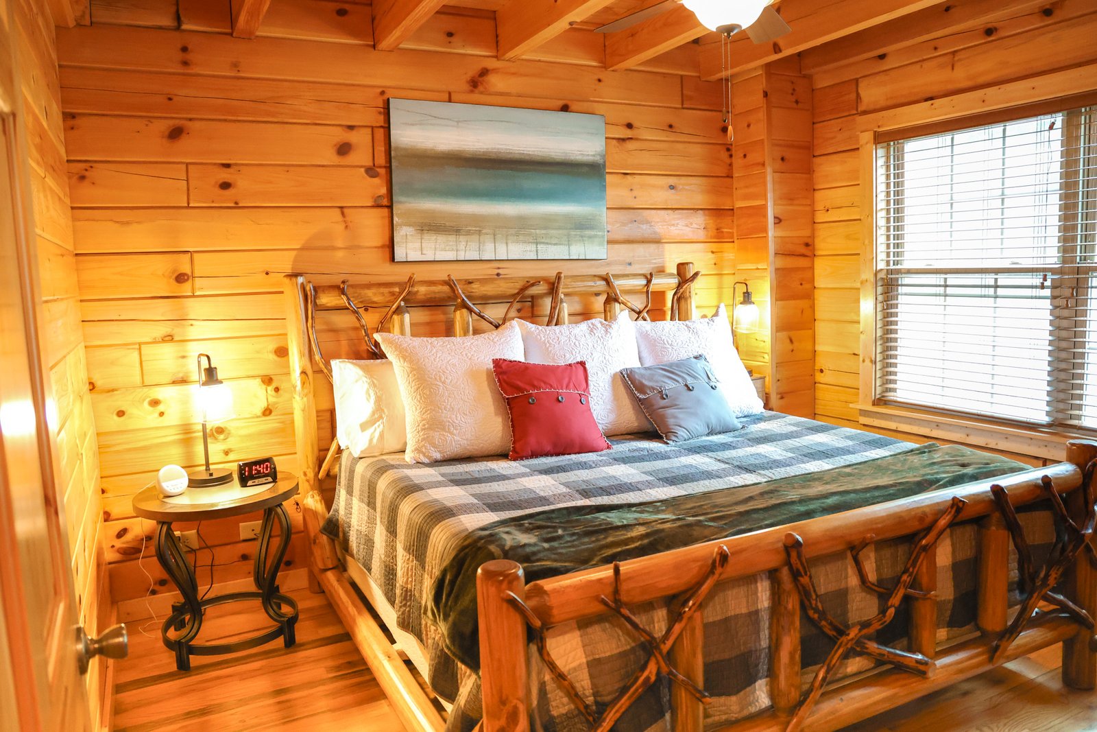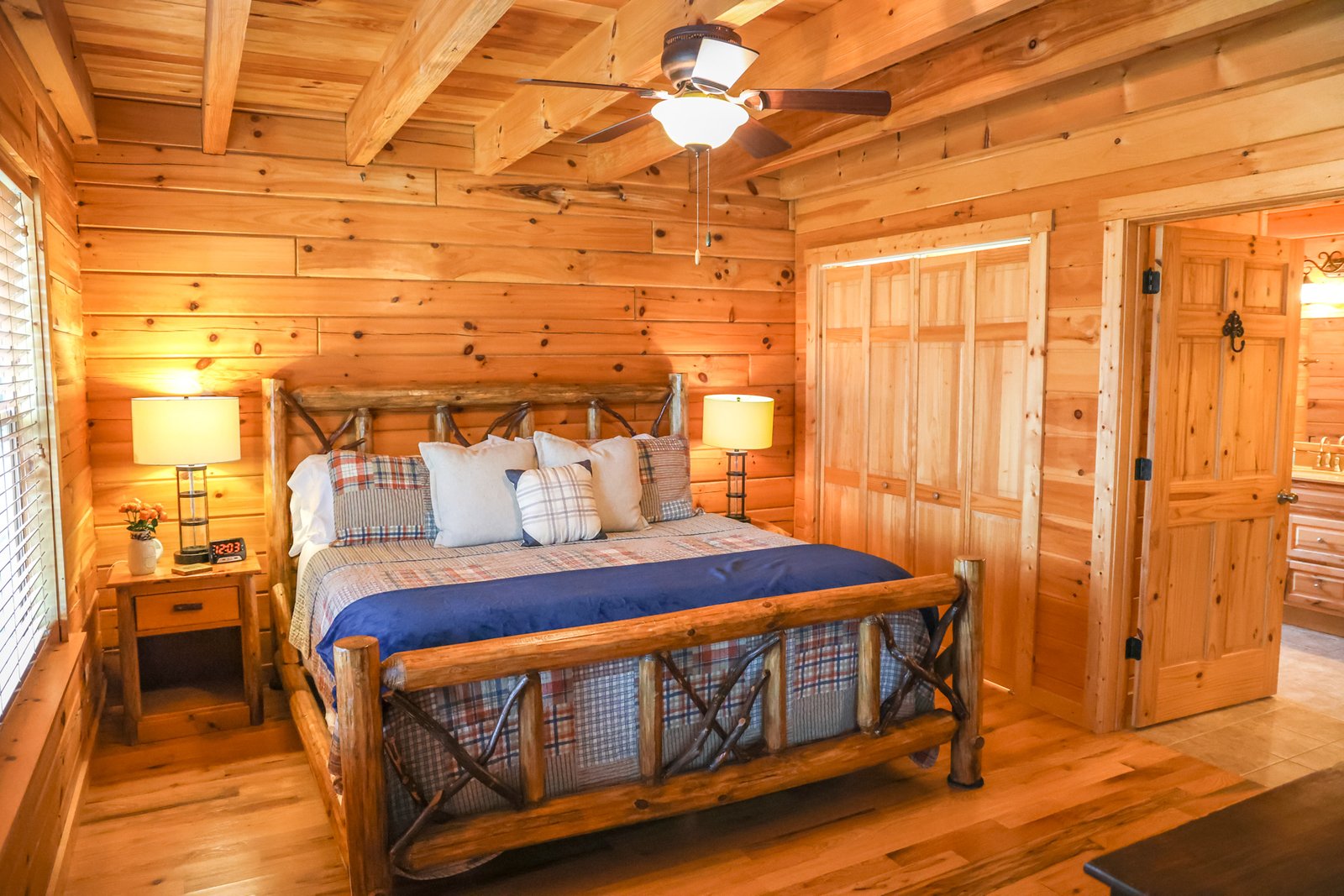 The King Suite is a proper retreat - a private, main-floor bedroom with a king bed, room-darkening shades, and enough quiet to actually sleep in. It's the kind of room where you wake up not because you had to, but because the light coming through felt like a good enough reason. Designed with couples and anyone craving true rest in mind, it's a space that holds its peace even when the rest of the cabin is full of life.