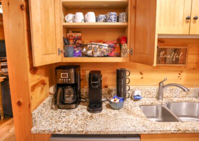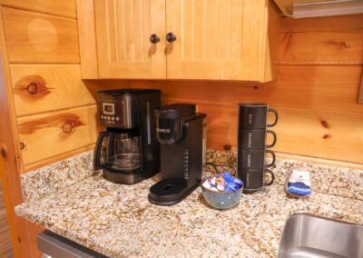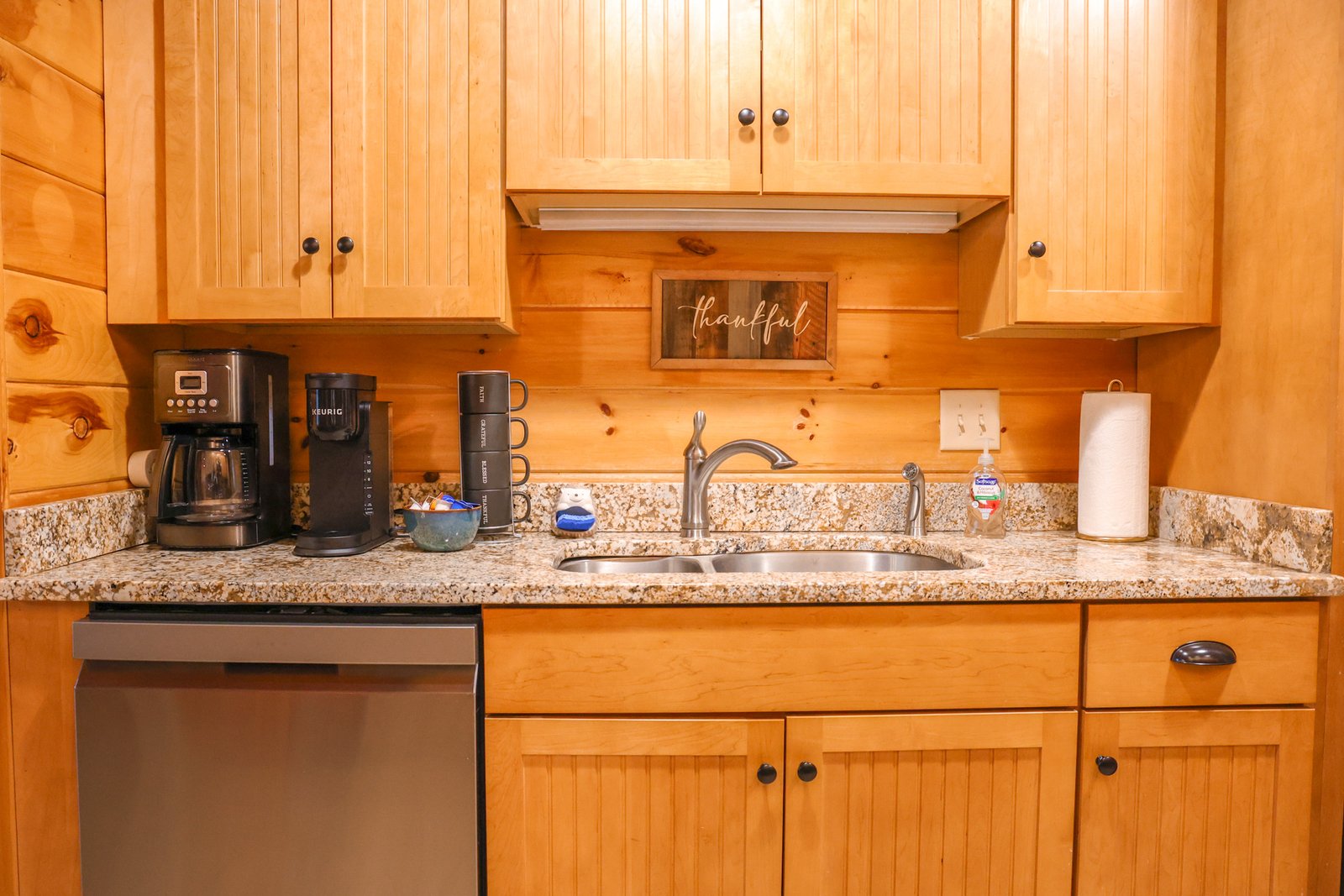 This isn't a cabin kitchen you work around - it's one you actually want to cook in. With a Samsung gas stove, single oven, LG InstaView refrigerator with craft ice maker, a blender, a Keurig, a drip coffee maker, and every utensil and dish you'd need, the kitchen is stocked and ready before you even unpack. Whether you're doing a big group breakfast, a slow dinner, or just making coffee while the mountains wake up outside, this kitchen keeps up.