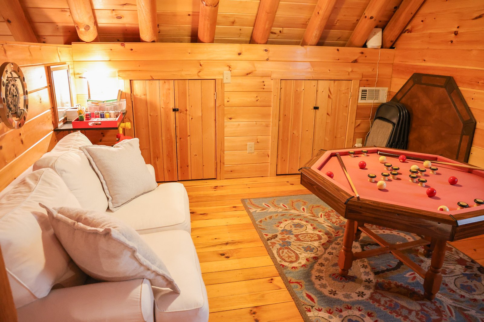 Tucked above it all, the loft is part sleeping space, part game room - a laid-back upstairs escape that earns its keep whether it's midnight or midday.