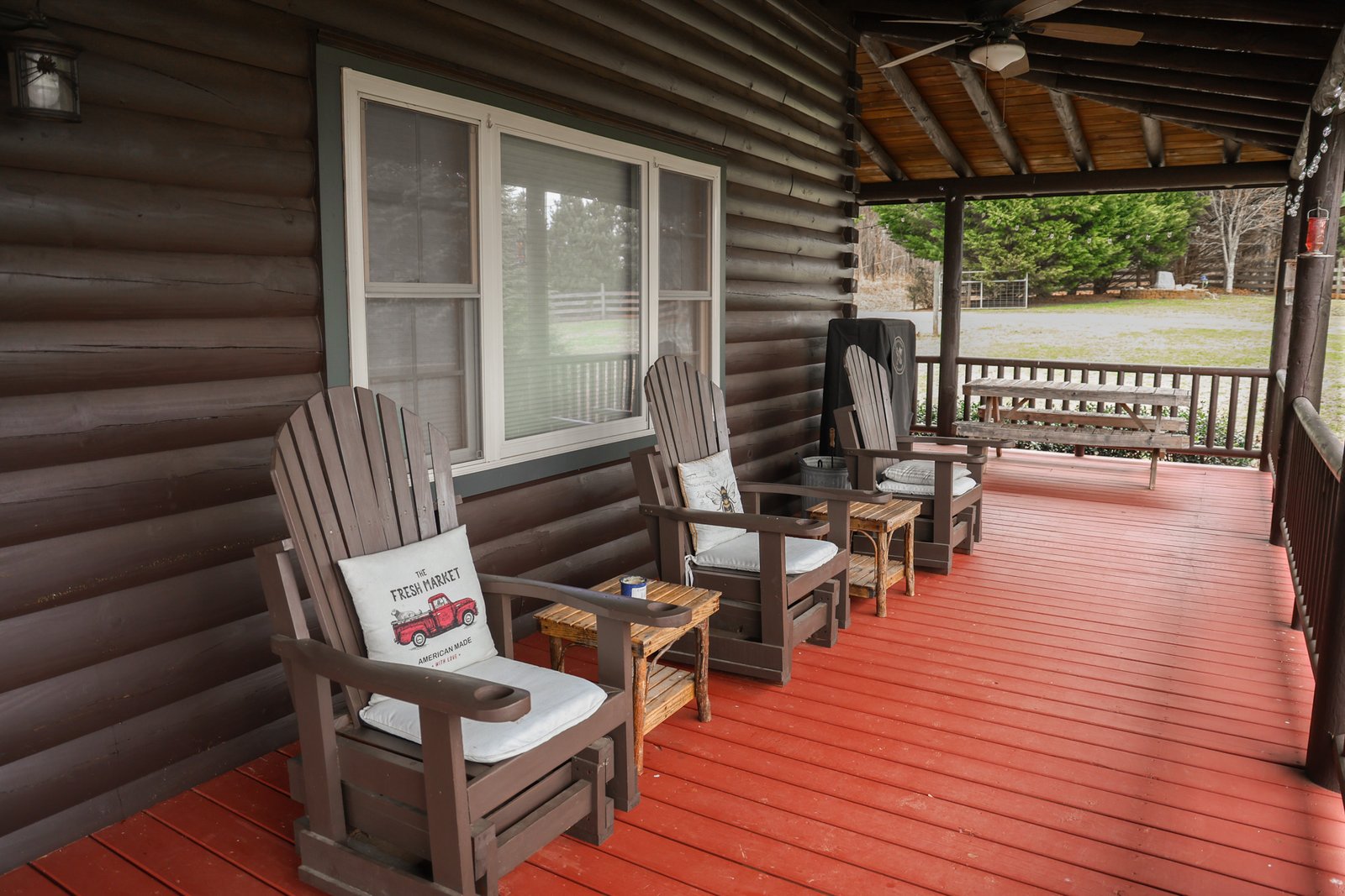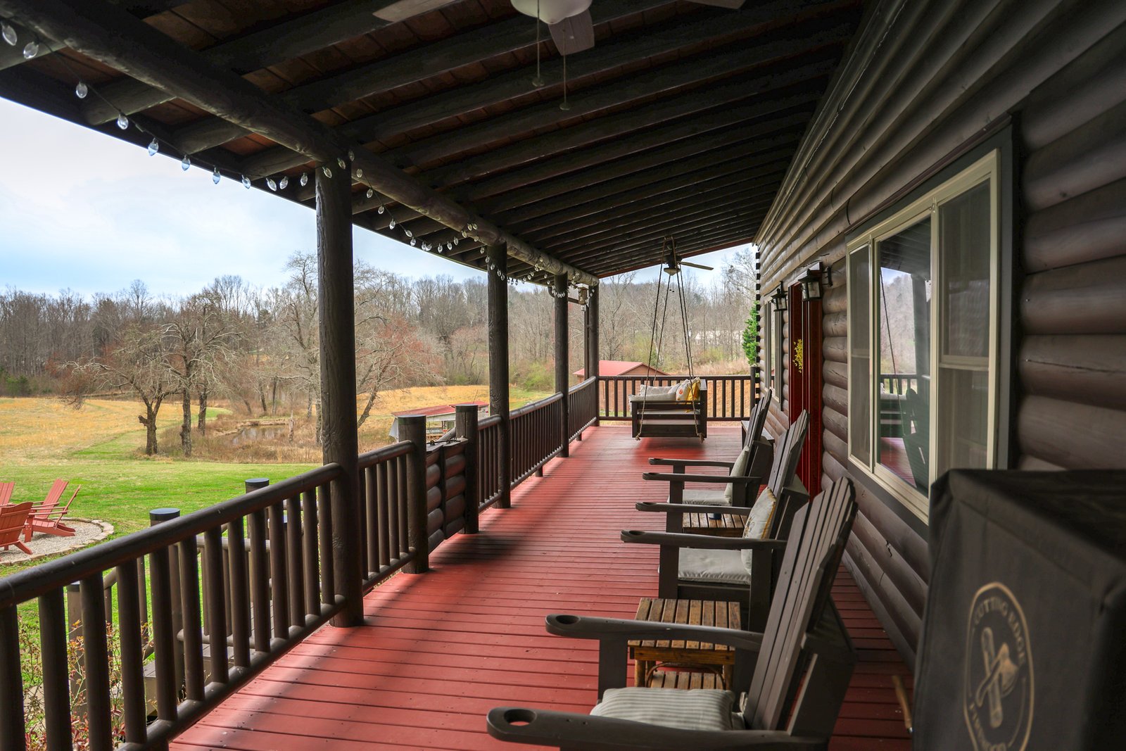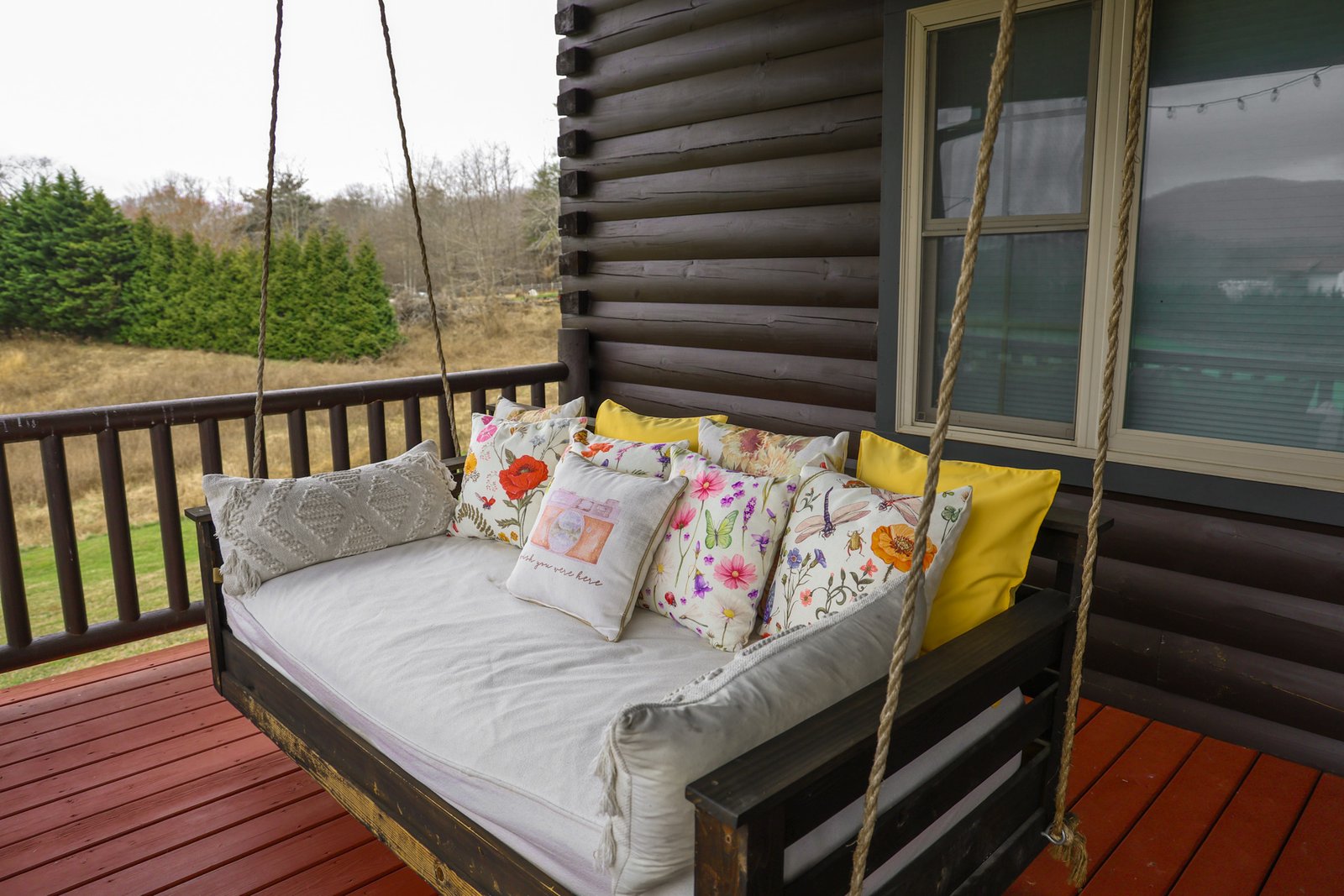 The covered porch is less an amenity and more an invitation - to slow down, sit still, and let the mountains do what they do. With a bed swing, open air, and a front-row view of the property and the ridgeline beyond, it's the place where coffee tastes better and conversations go longer than planned. Morning, evening, or somewhere in between - the porch doesn't care when you show up, only that you stay a little longer than you meant to.