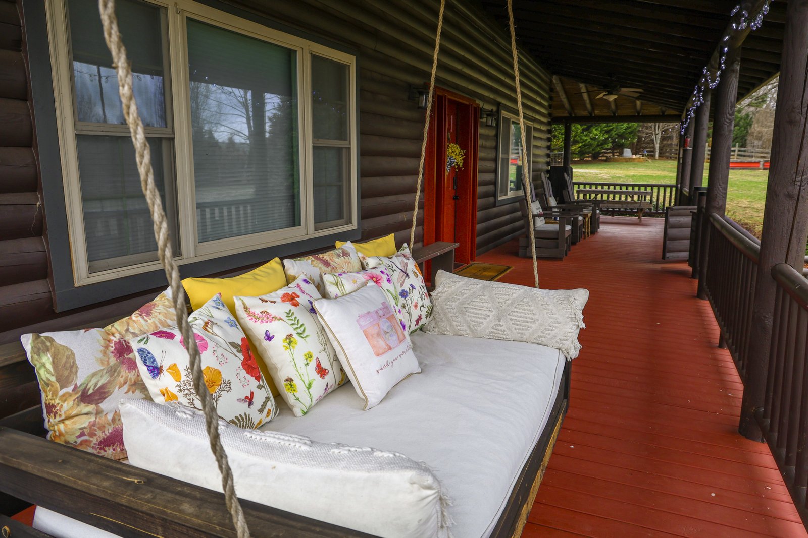 Step outside and the property opens up. Fish the stocked pond, pedal across the water at sunset, gather around the firepit, or simply claim the porch bed swing and let the mountain views do the rest. There are 11 acres to explore, and no shortage of ways to fill the time - or do absolutely nothing at all.